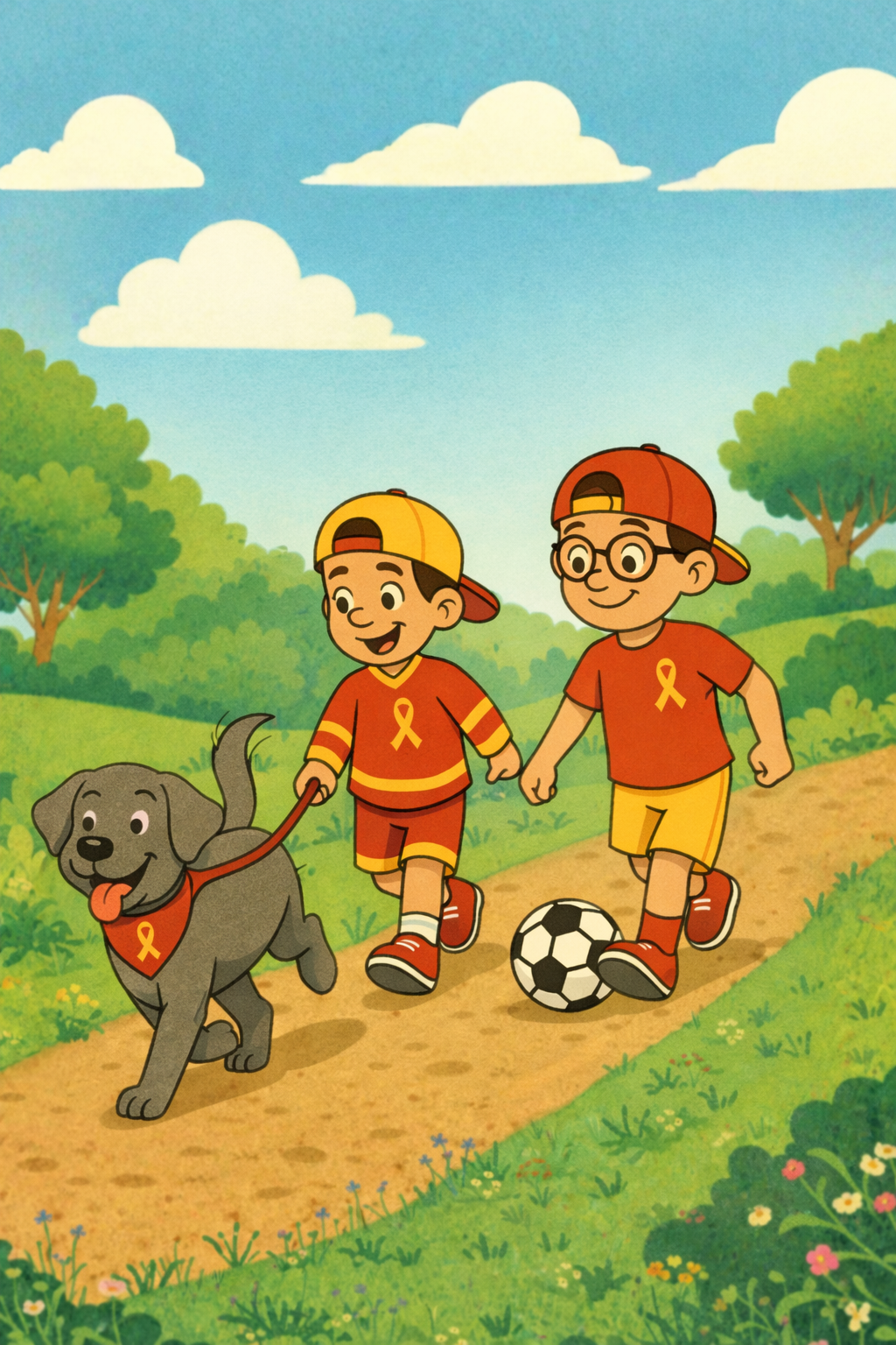 One afternoon, while playing in the park, the boys notice something across the street — children at the hospital who are fighting cancer but still finding ways to laugh and play.